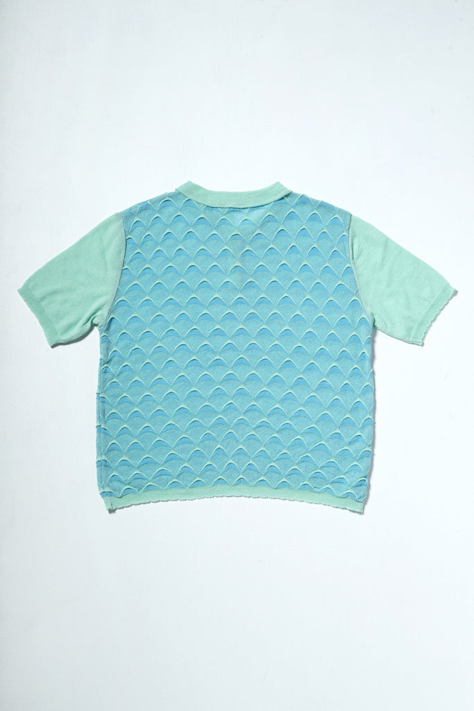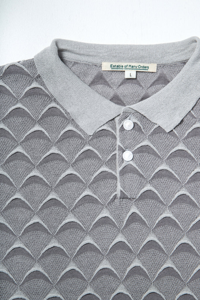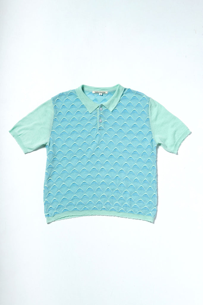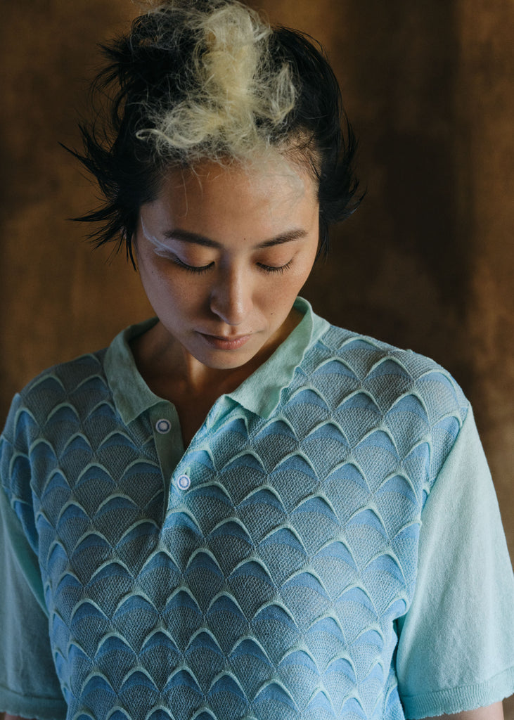 ひんやりした質感のコットン素材の軽やかなニットポロ襟シャツ。
