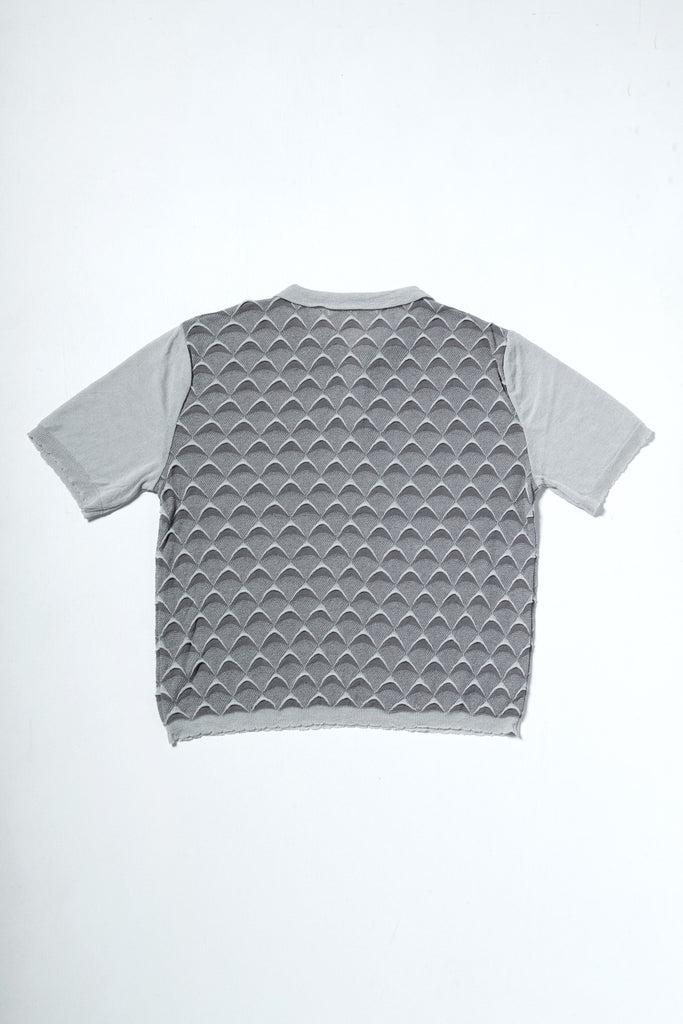 編み目を増やしたり減らしたりしてジグザグを作る「引き返し編み」と、2本の糸で立体にレイヤー使いする「プレッサー編み」を組み合わせることで表現されるユニークな模様が楽しいサマーニットです。〈AQUAMINT〉と〈GREYMIX〉の2色で、3サイズ展開。
